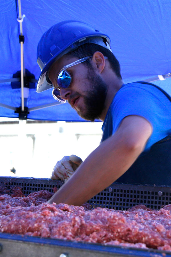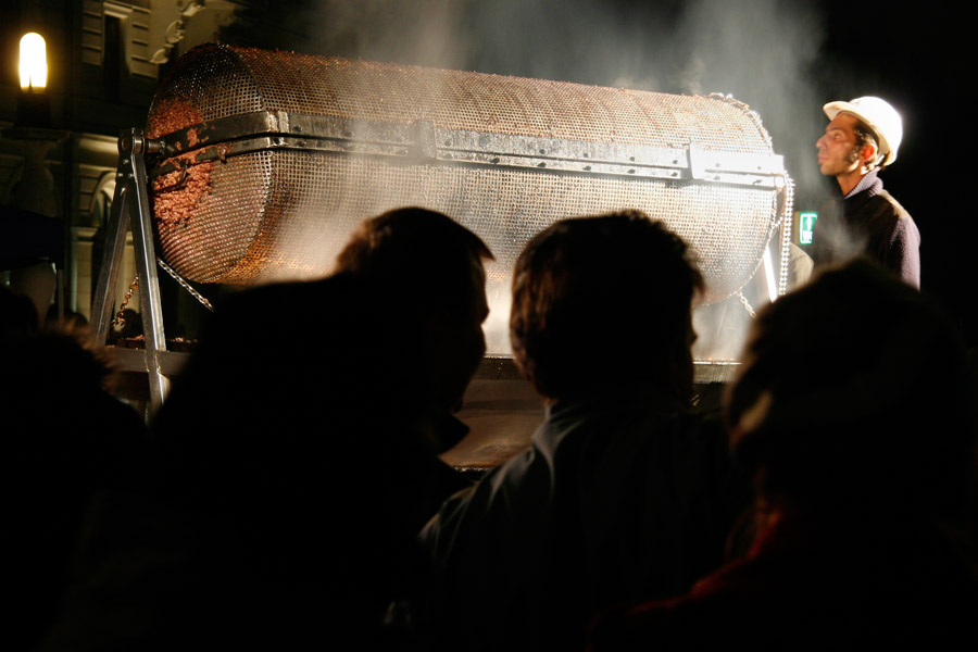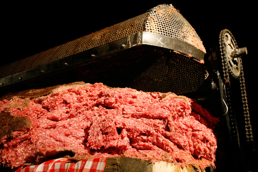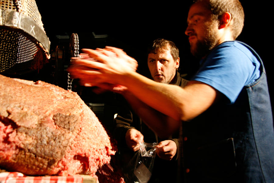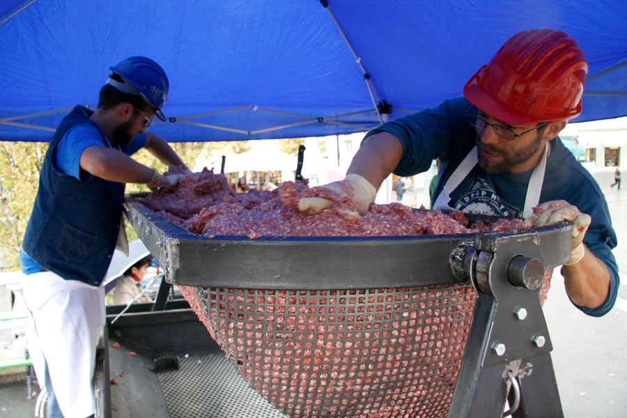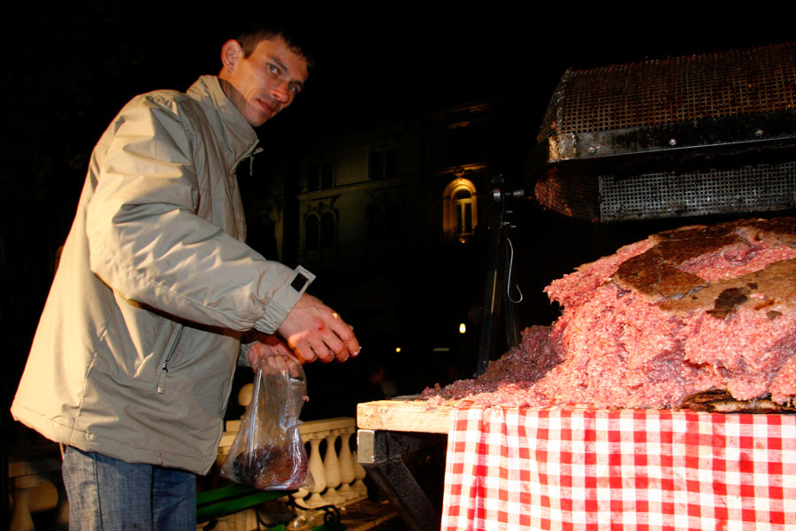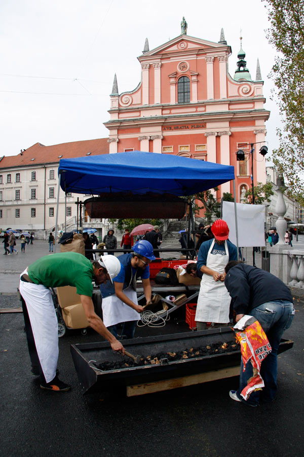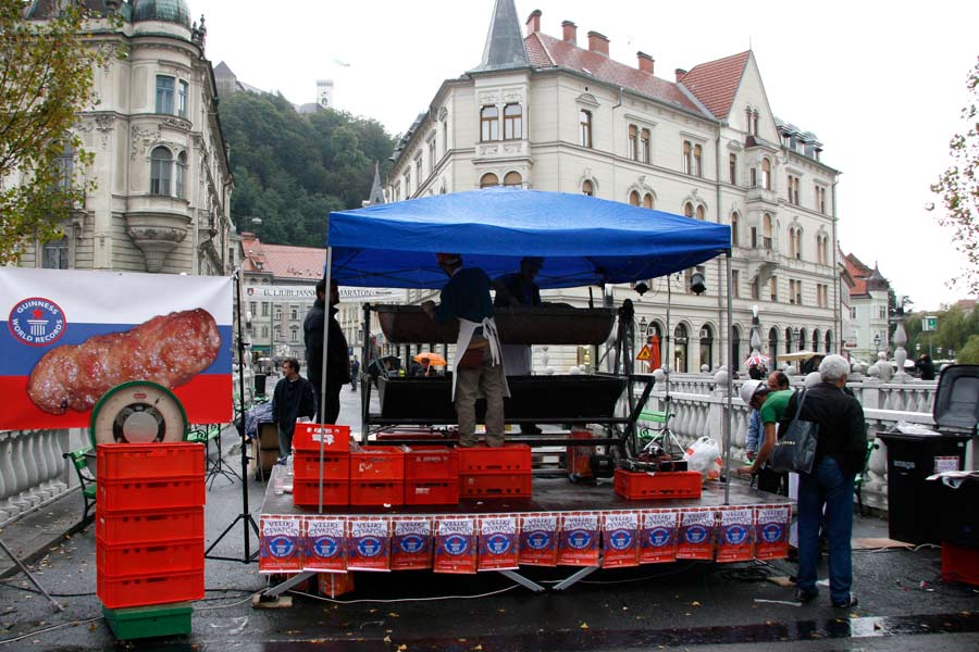 The event took place on 23rd of September 2008 in the centre of Ljubljana. The idea was to achieve the World Guinness Record with the biggest čevapčič (minced meat dish, traditional in the Balkans) ever cooked. The event was organised by the Modern Gallery from Ljubljana and Italian artists from Milano . The purpose of this happening was to raise questions about nationalism and Balkan identity. The event finished with the failure and more than 600 kg of raw meet was redistributed among the people.