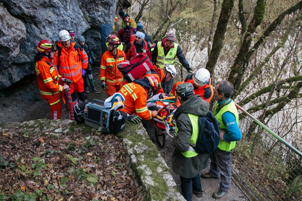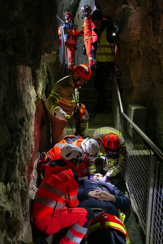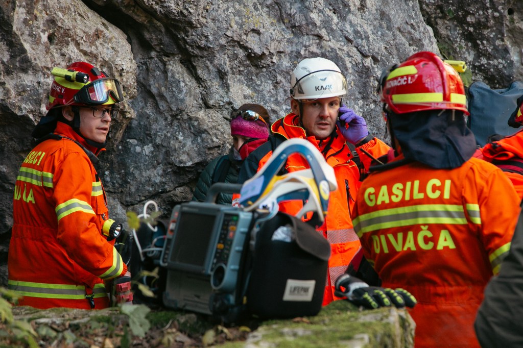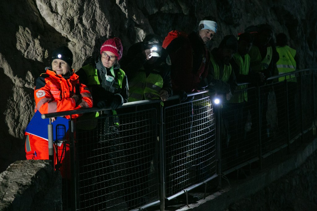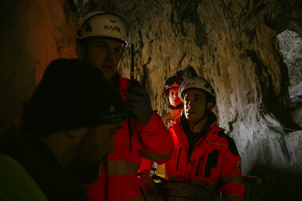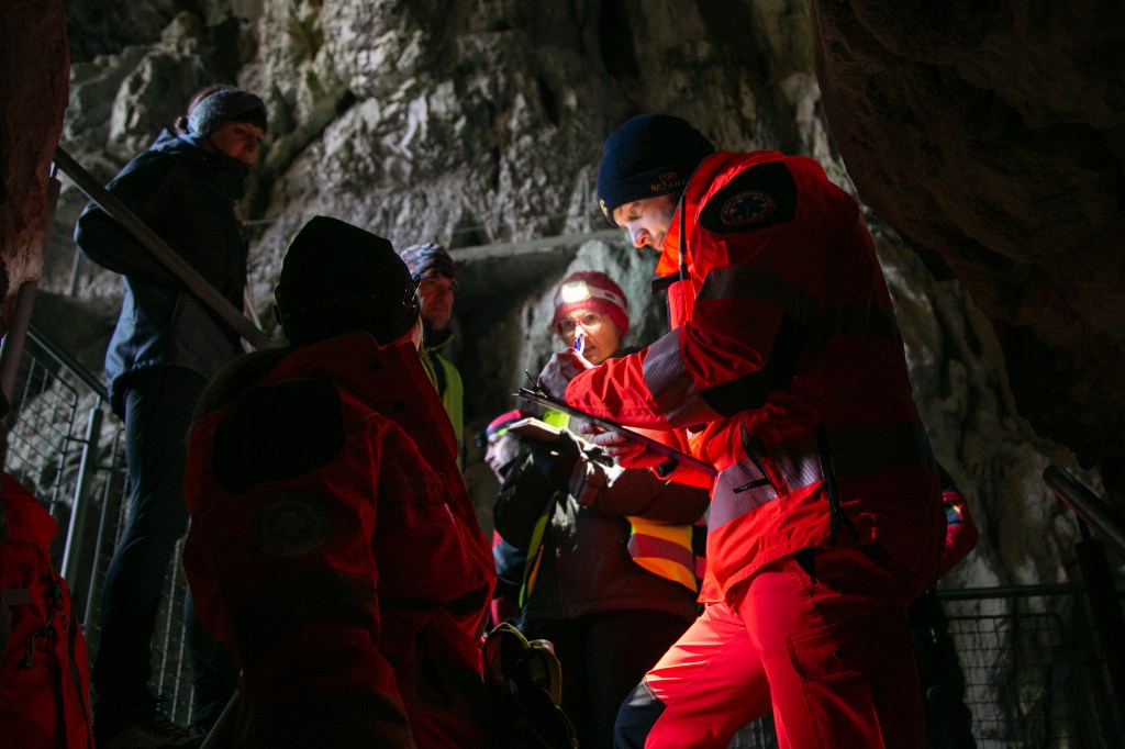 On Saturday, November 25, 2023, we, the members of the Mountain Rescue Service Ljubljana – group Ilirska Bistrica, were invited to a joint rescue exercise in the Škocjan Caves. The park staff had devised a scenario for the exercise in which various protection and rescue units rushed to the aid of a large number of injured people in the Mohorčičeva Cave. The cave rescue was both captivating and highly professional, followed by a thorough analysis and an even more sumptuous feast – firefighter-sized portions 🙂