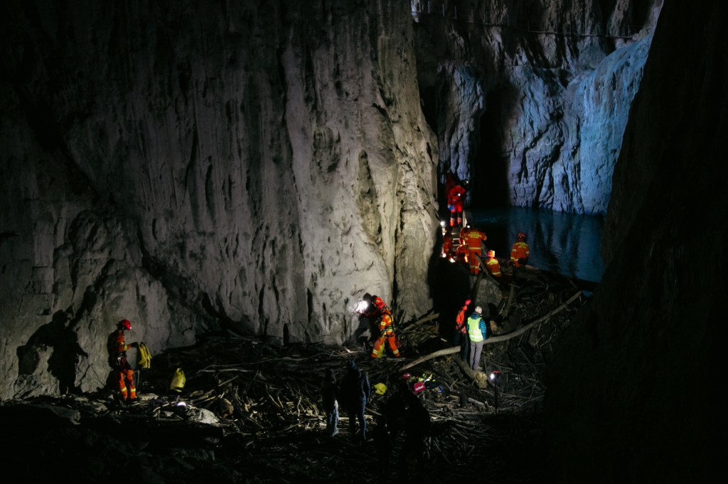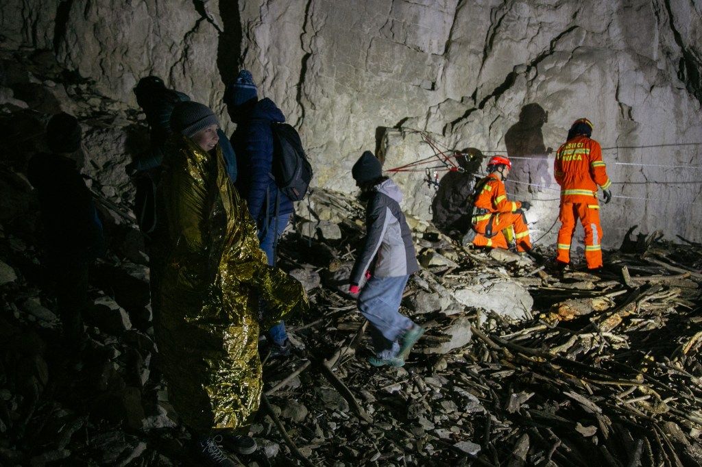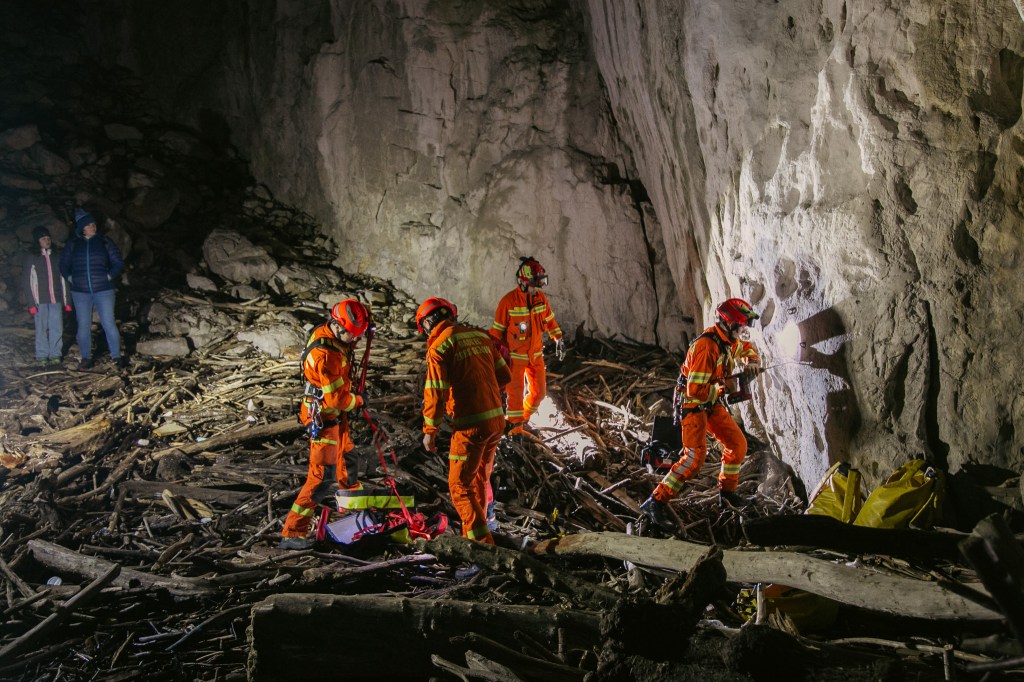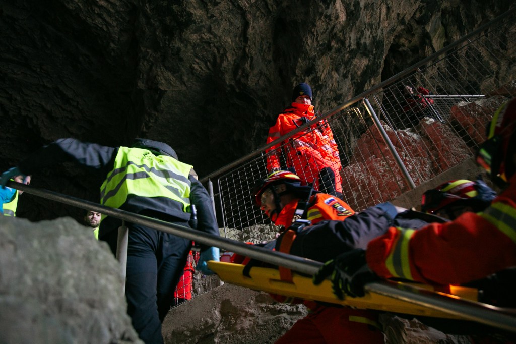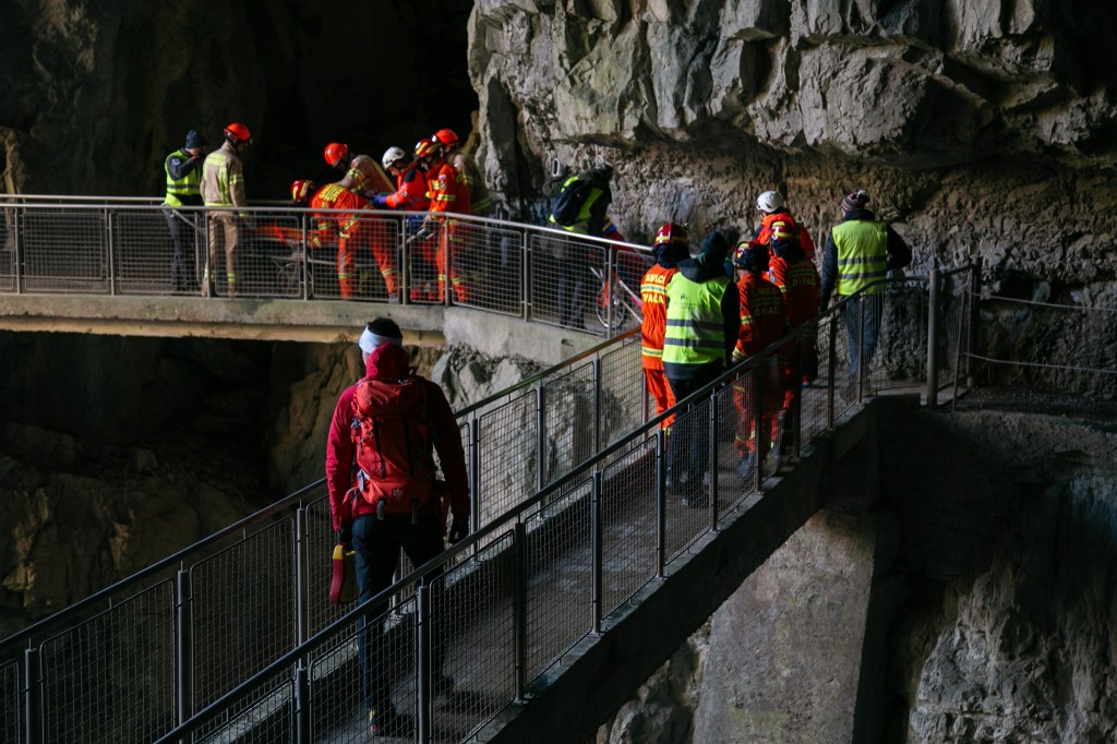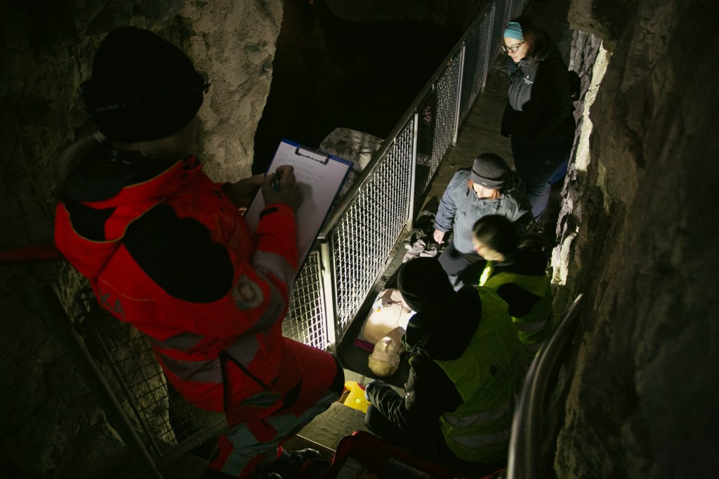 On Saturday, November 25, 2023, we, the members of the Mountain Rescue Service Ljubljana – group Ilirska Bistrica, were invited to a joint rescue exercise in the Škocjan Caves. The park staff had devised a scenario for the exercise in which various protection and rescue units rushed to the aid of a large number of injured people in the Mohorčičeva Cave. The cave rescue was both captivating and highly professional, followed by a thorough analysis and an even more sumptuous feast – firefighter-sized portions 🙂